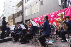 新型コロナウイルスの蔓延を機に中止となっていた、地元白山下商店会のチャリティ感謝市ですが、6年ぶりに呼んでいただき演奏を披露することができました。当日は晴れていたものの強風が吹きすさぶ中での演奏となり、楽譜が飛ばされたり譜面台が倒れたりと、大変な状況でした。それでも観客の皆様に温かく見守っていただき、演奏することができました。会場にいらっしゃった皆様、ありがとうございました。
